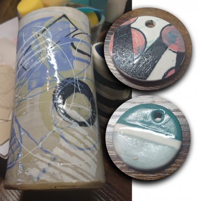 Potters often encounter the problem shown here. These pieces are fired at cone 6. They are decorated with underglazes made from a mix of porcelain powders and stains. The transparent glaze works over certain colors (e.g. the light blue), but over others, it is full of microbubbles and pinholes. The potter has not had success finding a transparent overglaze that works consistently. As can be seen here, stain types used in underglazes behave differently; they are not just inert powders. Also, stain manufacturers do not mix stains with porcelain to making underglazes. Context: A 2oz jar of.., Here is another reason.., Underglaze, Stain Medium Saturday 21st March 2026 COVID: Supply chains broke, prices soared.It is happening again. Time for DIY!