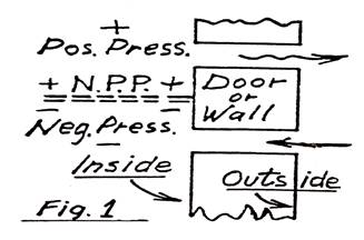 Neutral Pressure Point (N.P.P.): Although very important, this is probably the least understood. It is in the area or line above which is positive pressure and below which is negative pressure. The N.P.P. moves up and down according to the damper setting and chimney draft due to chimney temperature and height. Its position can easily be positioned if there are peep holes in the right location. Air, smoke, or a match flame will be drawn in below the N.P.P. but hot flue gases or flame will discharge from above the N.P.P. as follows.