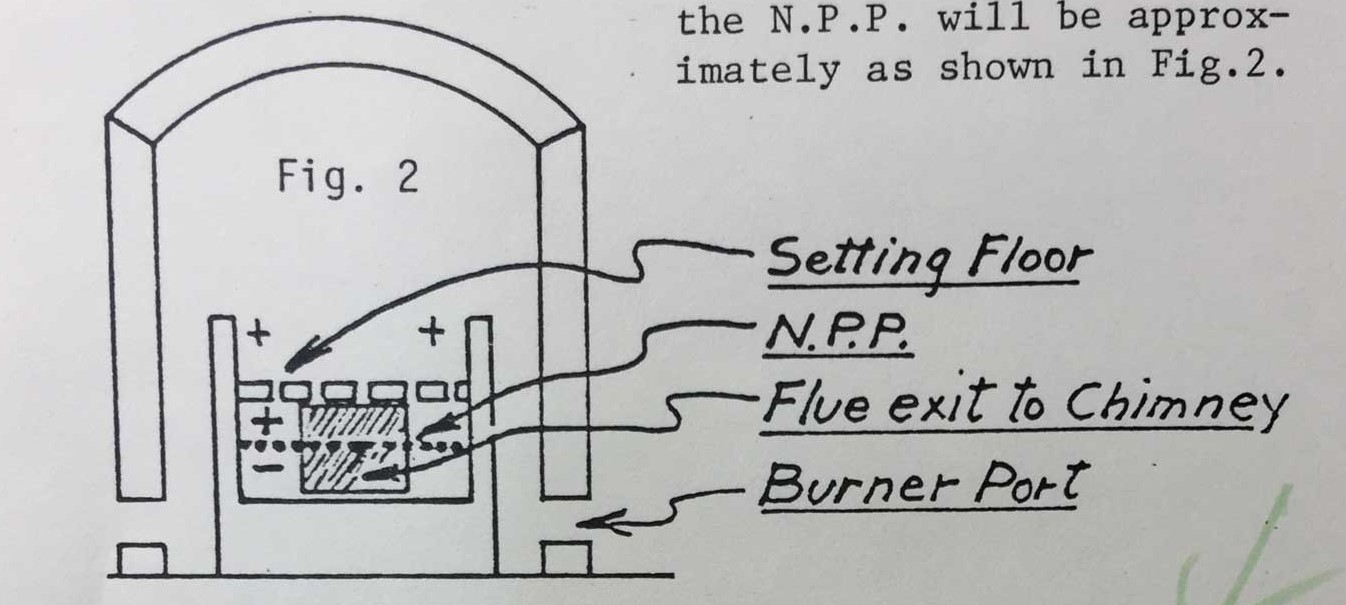 Positive Pressure Zone: This is any area in the kiln where the atmospheric pressure is above normal. During a reduction firing this would extend from the damper back to just be-low the floor. In a poorly designed kiln, or over-reduction, it could extend to below the top of the burner ports and cause flue products to back out the burner ports.