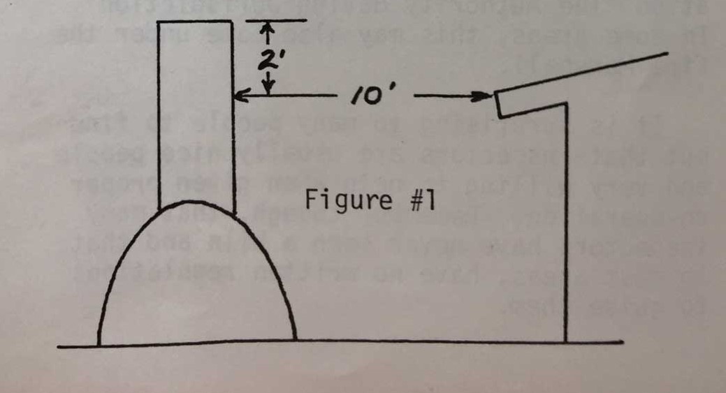 Since the burner port is to take air in and not to be a vent outlet; the top of the port should be about 3 courses below the top of the flue exit (see Figure 4). We have seen potters who judged the amount of reduction by the size of the flame (loaded with carbon monoxide) issuing from the top of the burner port. This practice I consider ridiculous and can be dangerous to your health (and Insurance Co.).
