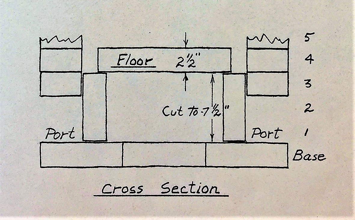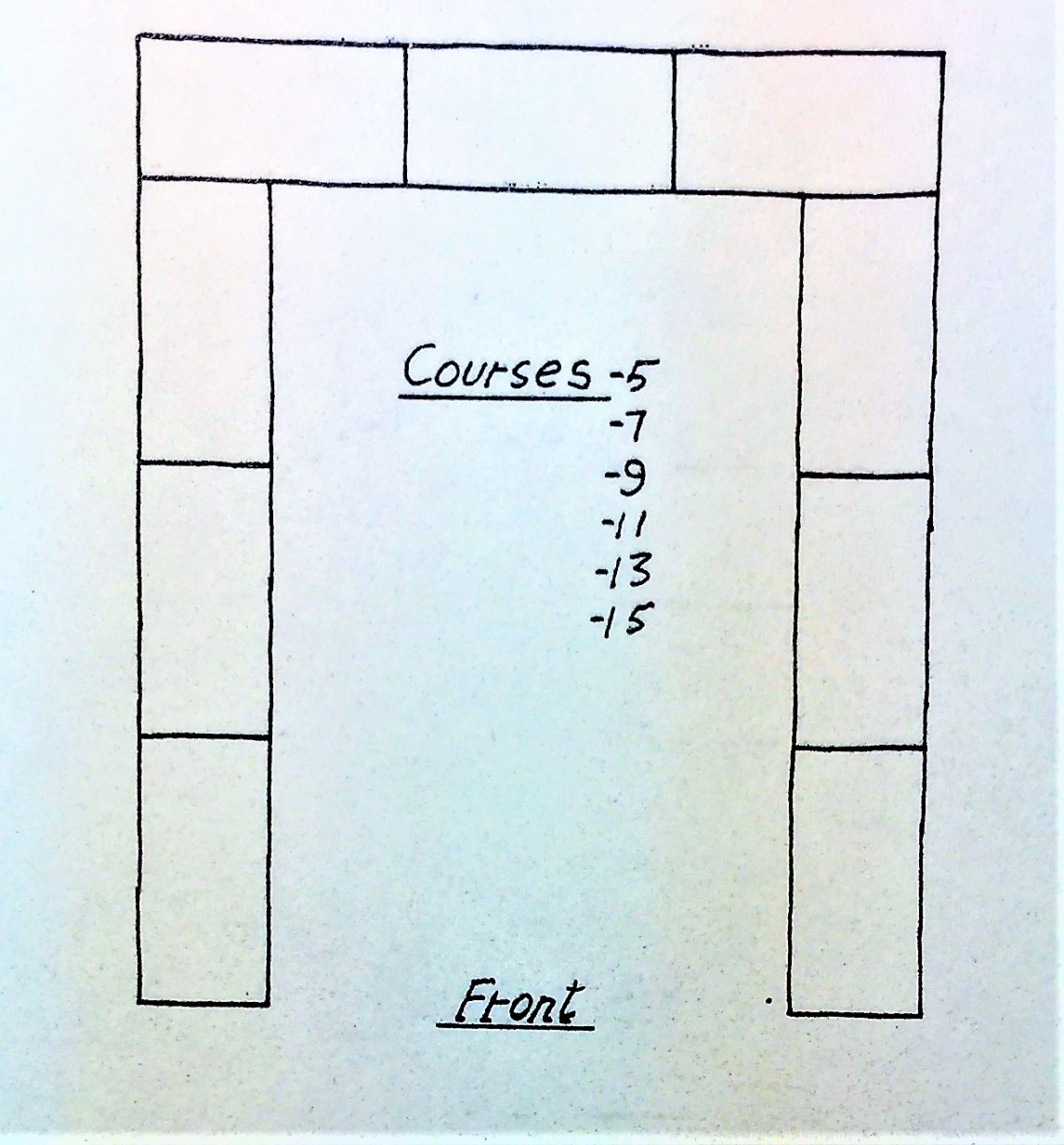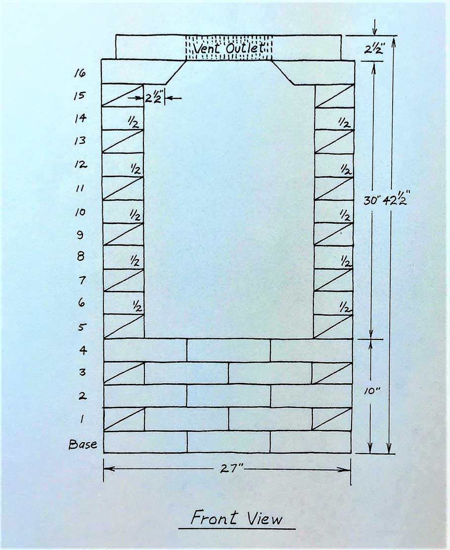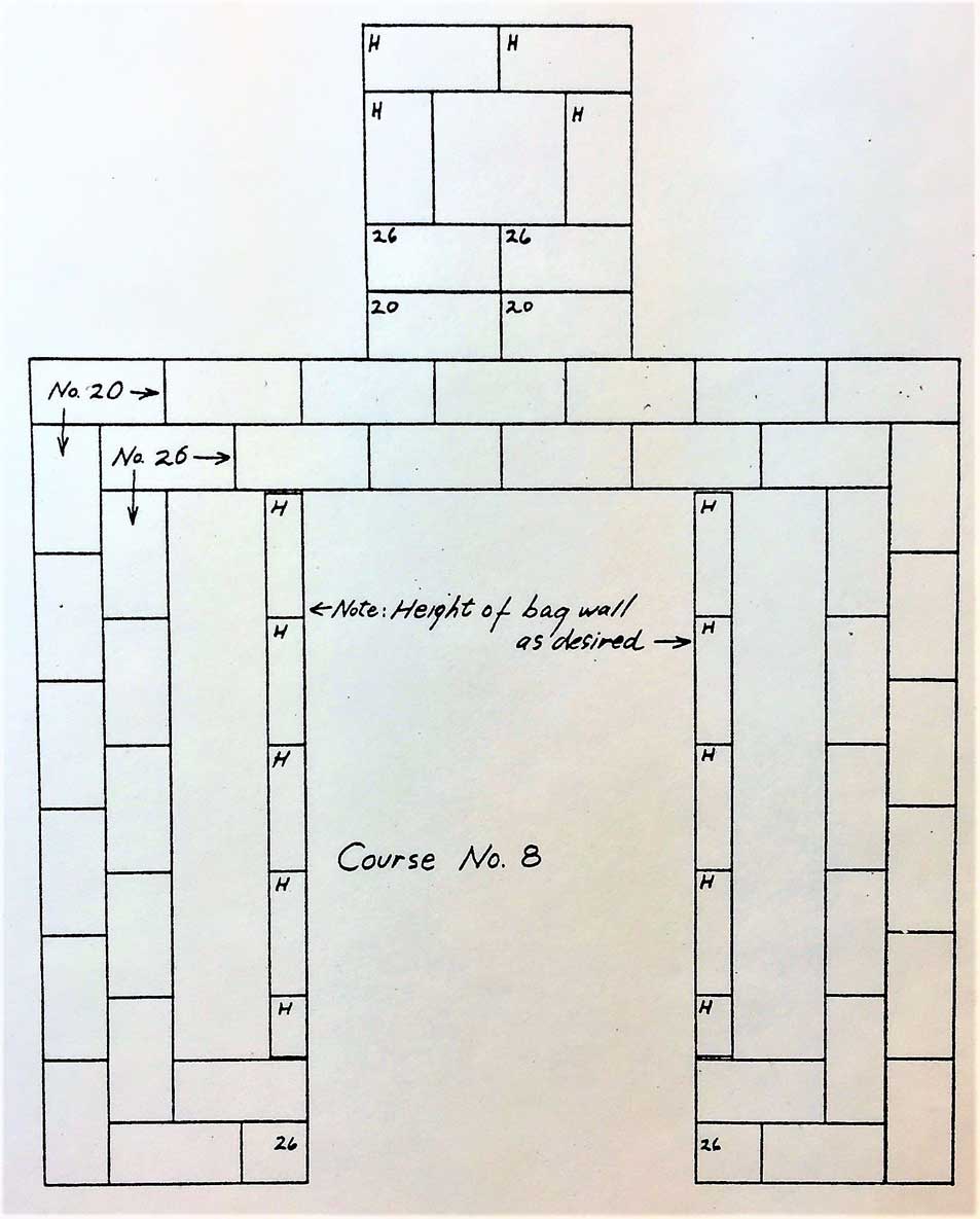Despite all the foregoing, the simplest means is to decide on the number of burners from Figure 7 and build the ports a half brick wide (4 ½") by 2 courses high (5") and then later with insulating brick, reduce them to the desired size.