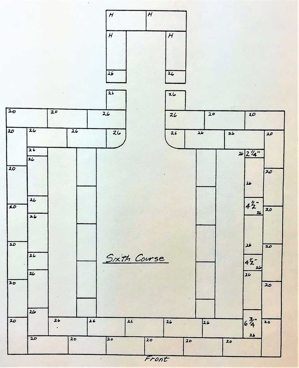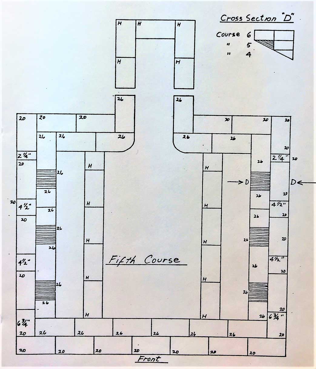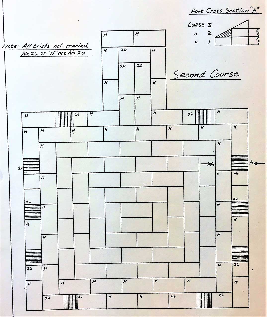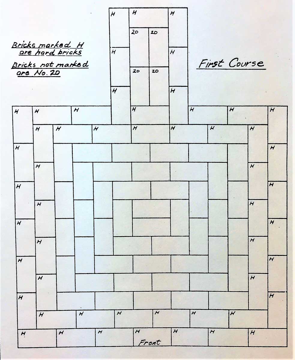 Despite all the foregoing, the simplest means is to decide on the number of burners from Figure 7 and build the ports a half brick wide (4 ½") by 2 courses high (5") and then later with insulating brick, reduce them to the desired size.