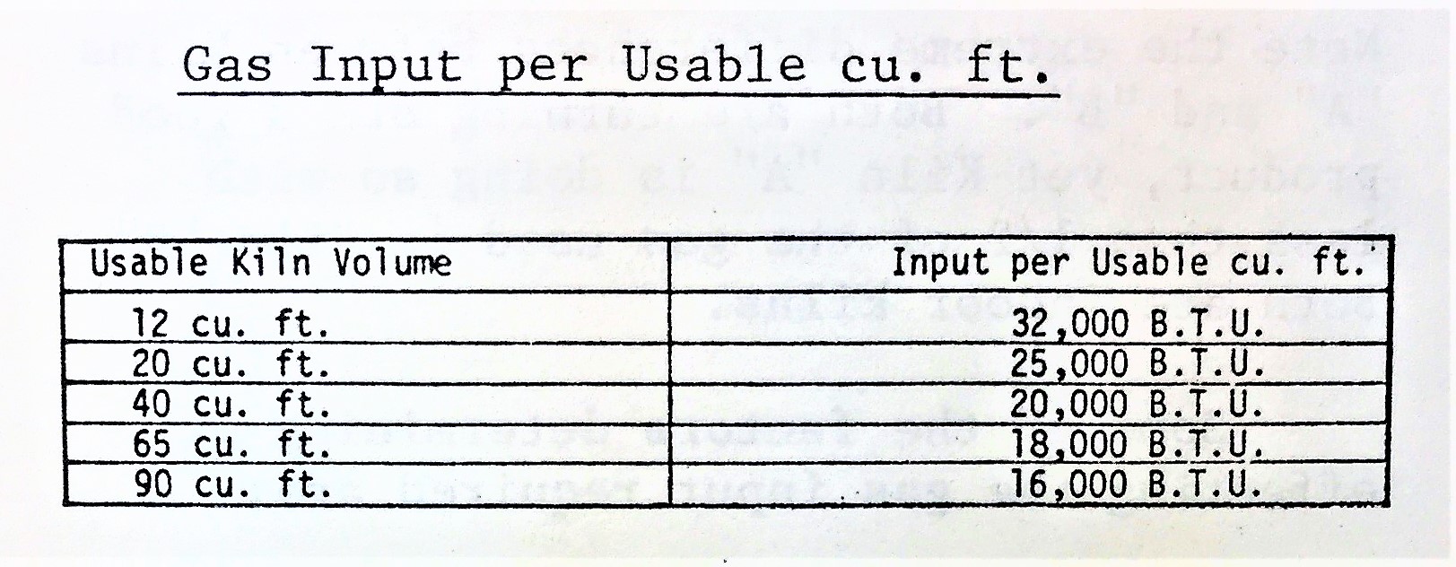 The amounts of gas per usable ft3 vary greatly with the size of the kiln. This can be best illustrated by the Table in Figure 6 which is based on the results of actual tests.