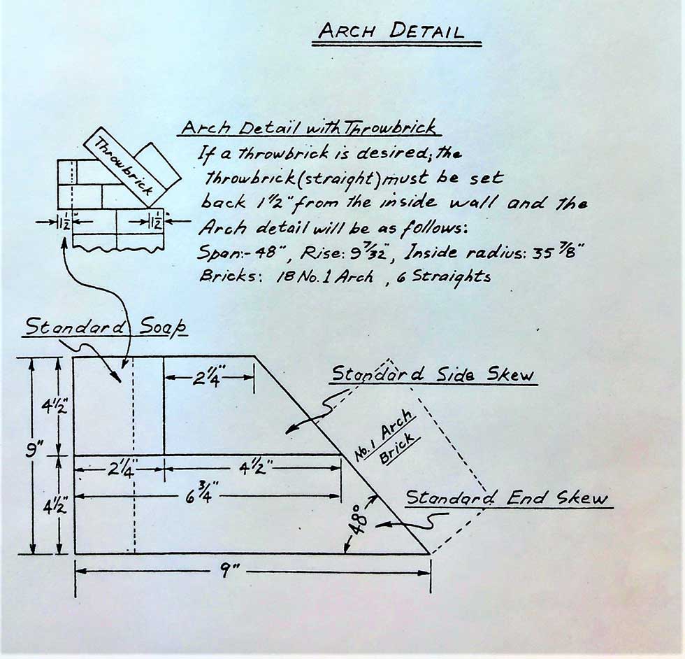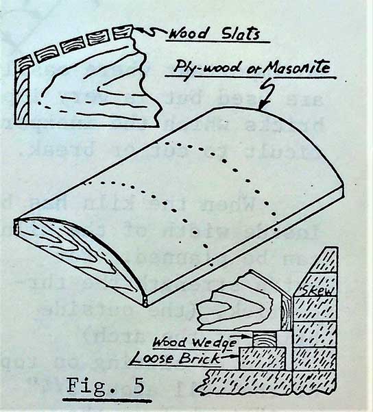 One of the reasons for choosing an arch rise of 2.302" per ft. is that a standard side skew or end skew can be used. Again, because insulating brick is easy to cut, this is not a problem, but where hard fire brick is planned it is much easier to be able to purchase them.