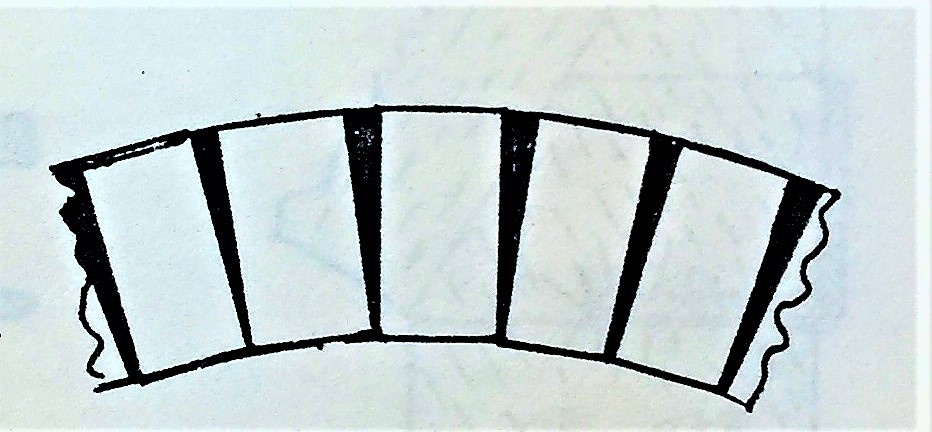 Having the figures from the chart, the plans for the arch form can now be drawn up on a large sheet of paper or cardboard. The arch form can be made up of wooden slats or Masonite as is shown in following image.