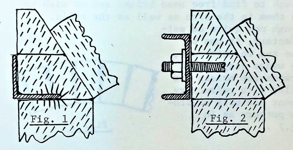 The following image shows a type of angle iron buttress which is quite common but which has an inherent danger of overheating the inside portion of the angle iron. This weakens the buttress and I have actually seen an arch which dropped slightly at the centre because the angle iron bent outwards when the kiln was hot.