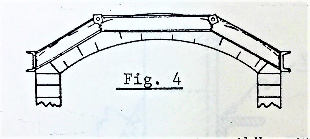 Before the arch form can be removed the steel buttresses must be in place to take the outward thrust caused by the weight of the arch. We cannot talk about the arch without also considering the stays which are the threaded bolts which hold the buttresses together.