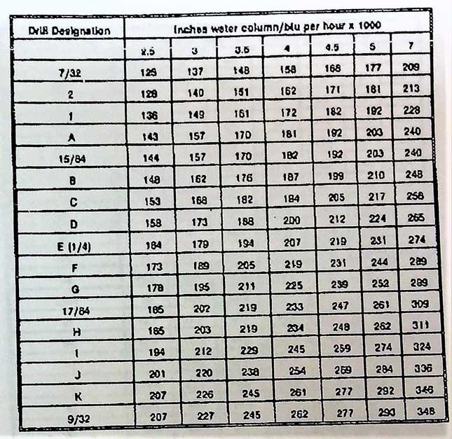 575,000 BTU input from Figure 7 divided by 8000 BTU = 71 in2 port area which is 12 in2 per burner port.