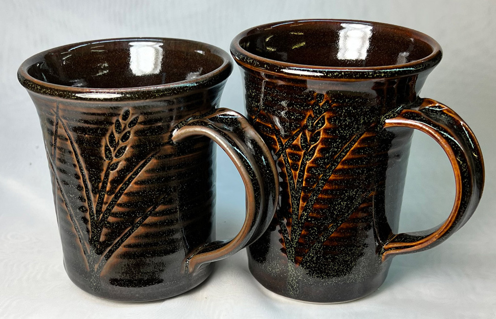 Tenmoku mugs fired at cone 10R. Two different recipes.