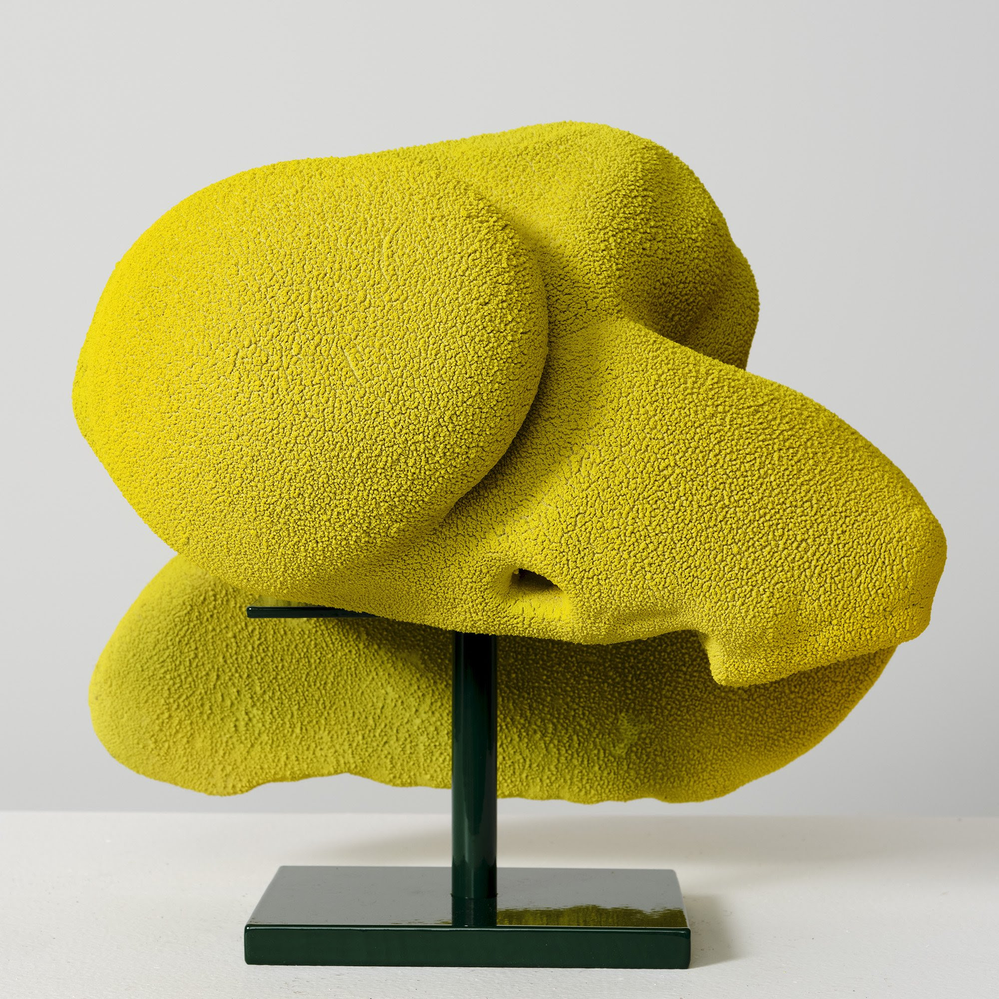 This happens on the inner walls of a spray booth, but how do you make it happen on your ware? If glaze were sprayed directly onto the metal walls of the booth, it would crack on drying. To produce this texture, the overspray accumulates over time, in hundreds of micro-layers, the existing build-up is able to tolerate the shrinkage of each new one. Getting this to work on a sculpture thus is an exercise in speeding up time. But the most difficult part is not actually getting the texture, it is achieving fit (so it does not flake off or crack on drying). The second most difficult part is matching the firing shrinkage of the body and surface texture (so flaking or cracking don't occur in the kiln). How did this artist achieve that?