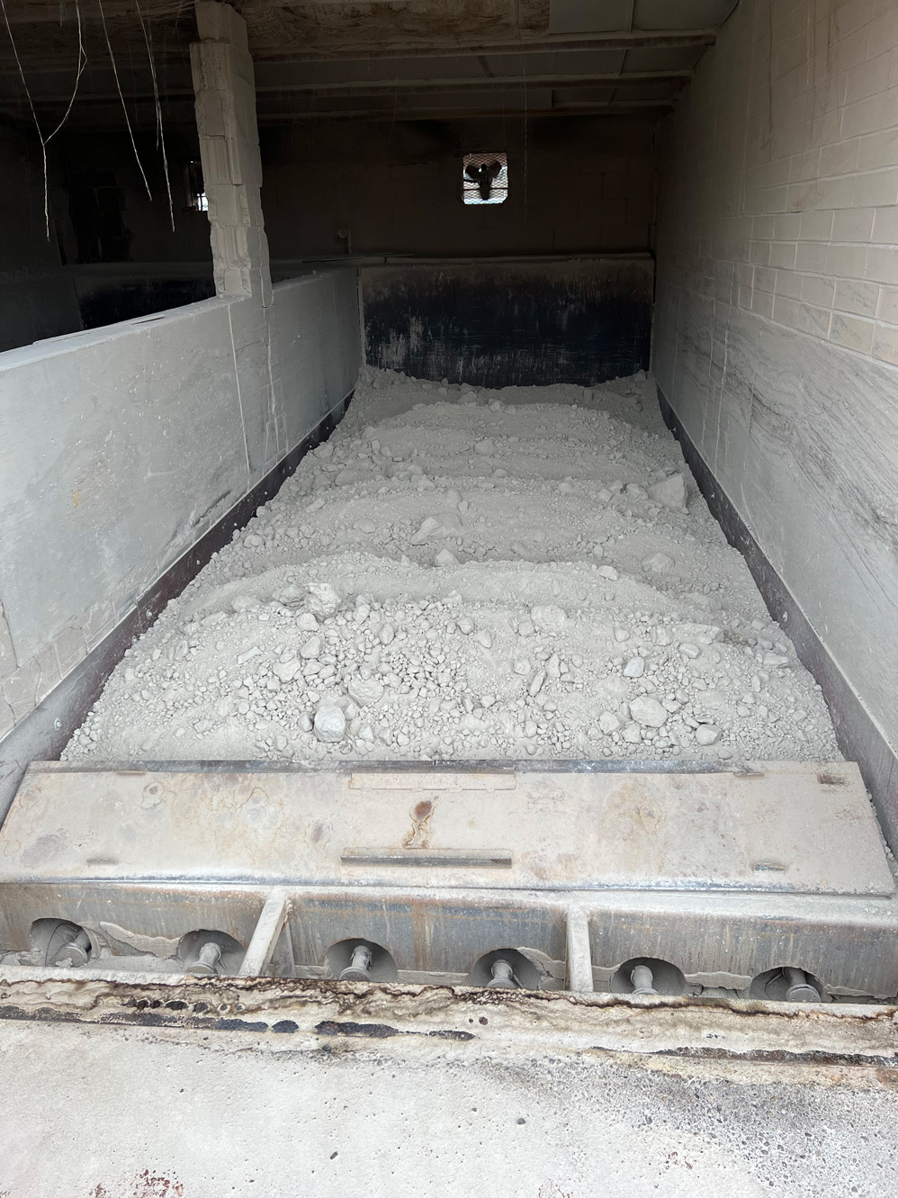 For efficient powderization, grinding mills need dry clay. But Plainsman driers are unbelievably inefficient, basically they are concrete saunas. Four tons of clay go in each of four, their 22 total burners go night and day for 10-11 months a year. And have done so for the past 50 years! The equivalent of two full-blast burner-hours are needed to dry each box of clay from 8-10% down to 2-3% moisture (enough to fire our large gas kiln to bisque). A paved yard area for simple sun-drying would replace, reduce, or even replace these old driers (summer heat and dry weather are guaranteed here). Stage two: A rotary drier. These are a standard in a wide range of bulk material processing industries.