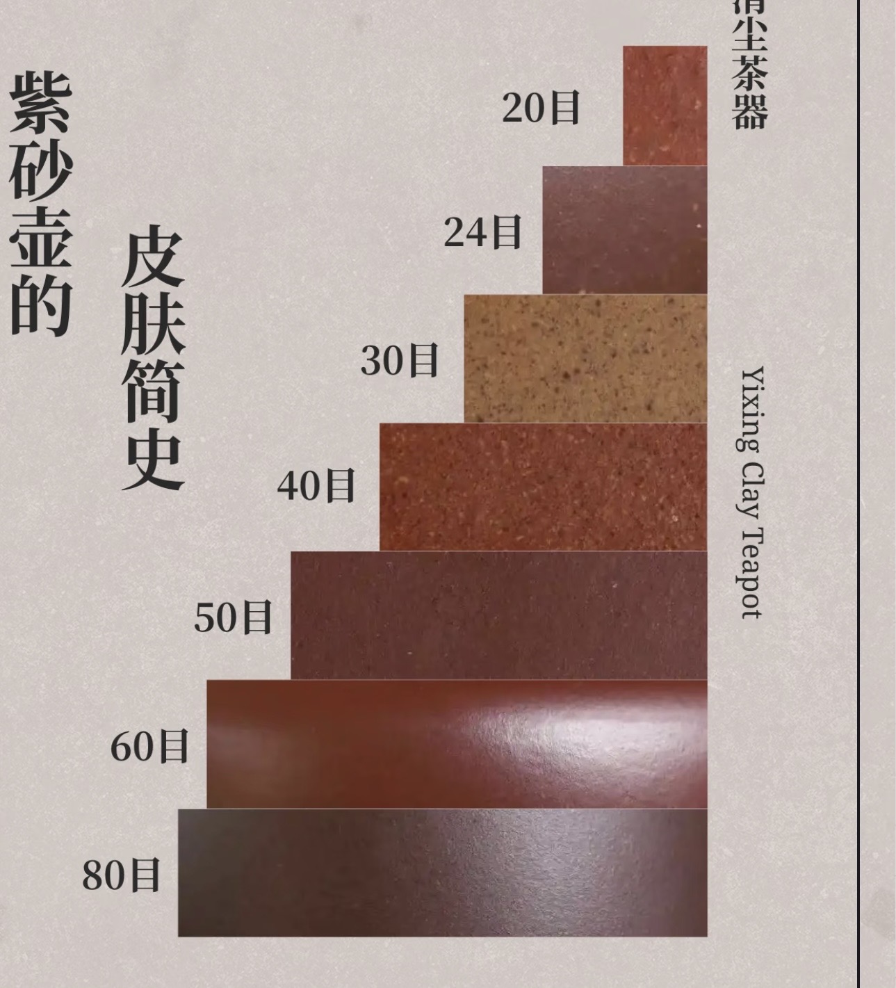 These are different Yixing clays processed to different mesh sizes, the examples are to show the differences in graininess of the different mesh sizes.